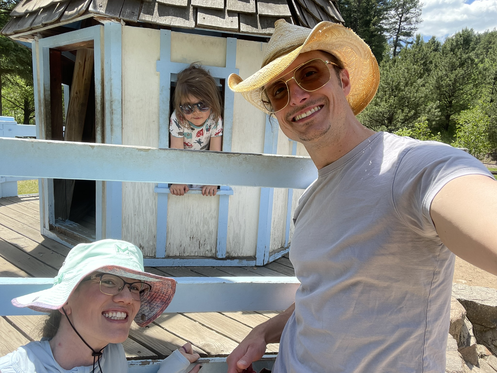 Finally, the base is from my great grandmother-in-law’s Singer sewing machine. I carefully restored it from a few decades of outdoor storage with hours of wire brushing, turpentine, and a little bit of black paint. I preserved all the original hardware and used it to attach the top.
