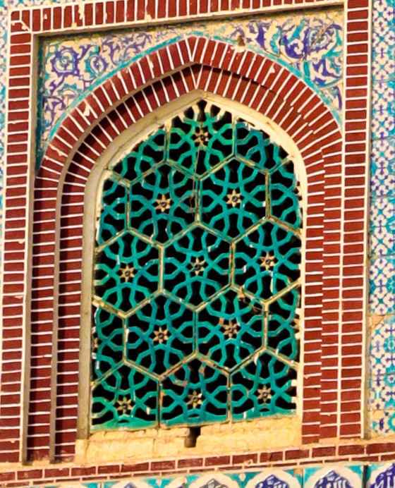 Handmade porcelain tiled table inspired by the Shrine of Hazrat Shah Shamsuddin Sabzwari in India.