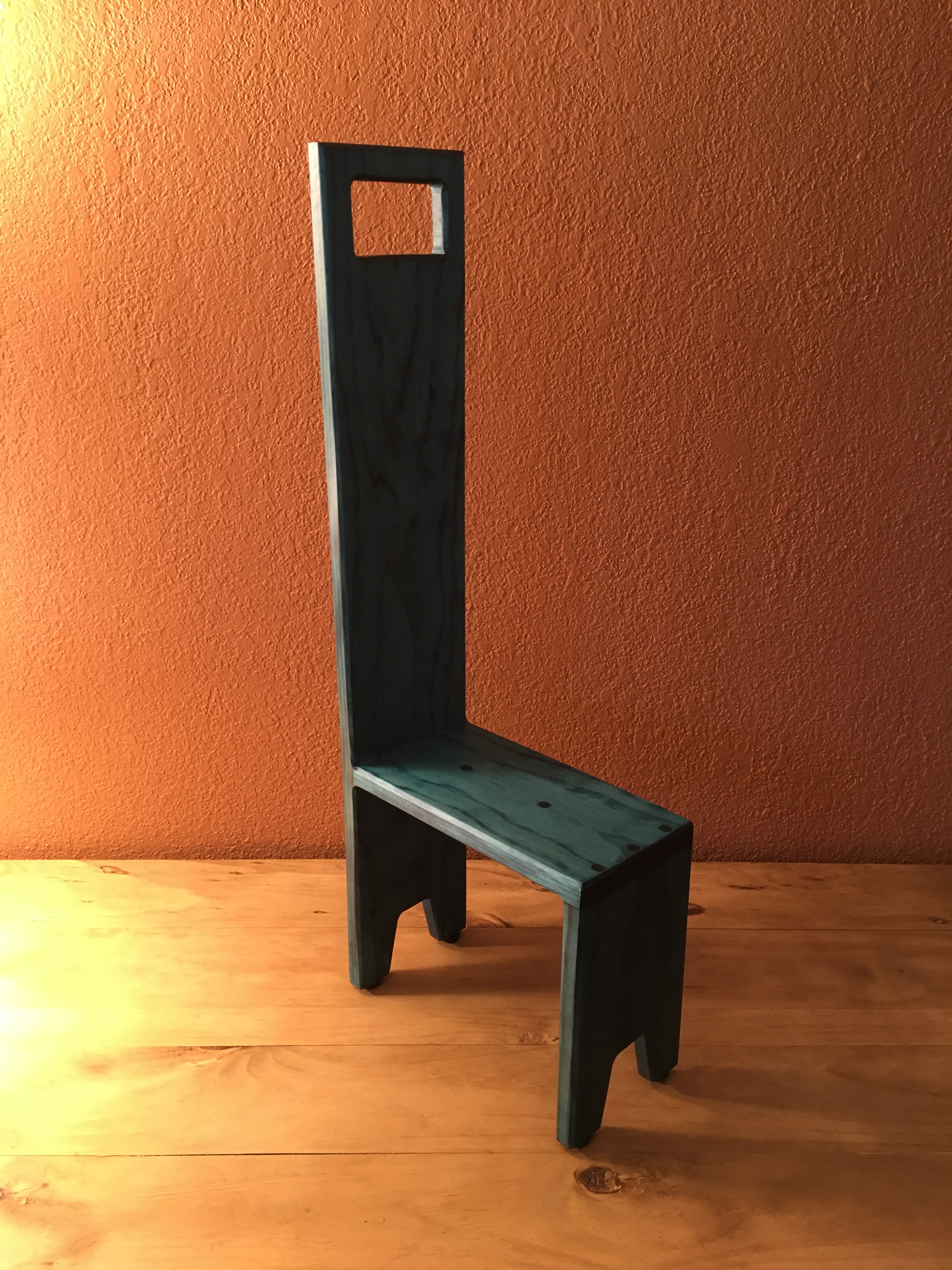 Brass tubing loops around the perimeter of the tiles to provide an outer edge for the grout before it encounters the wood. Using a chemical blackening agent I darkened the brass into subtle shades of blue and green to blend harmoniously. Yellow iron-oxide pigment was added to the grout to grant it its emphasis.