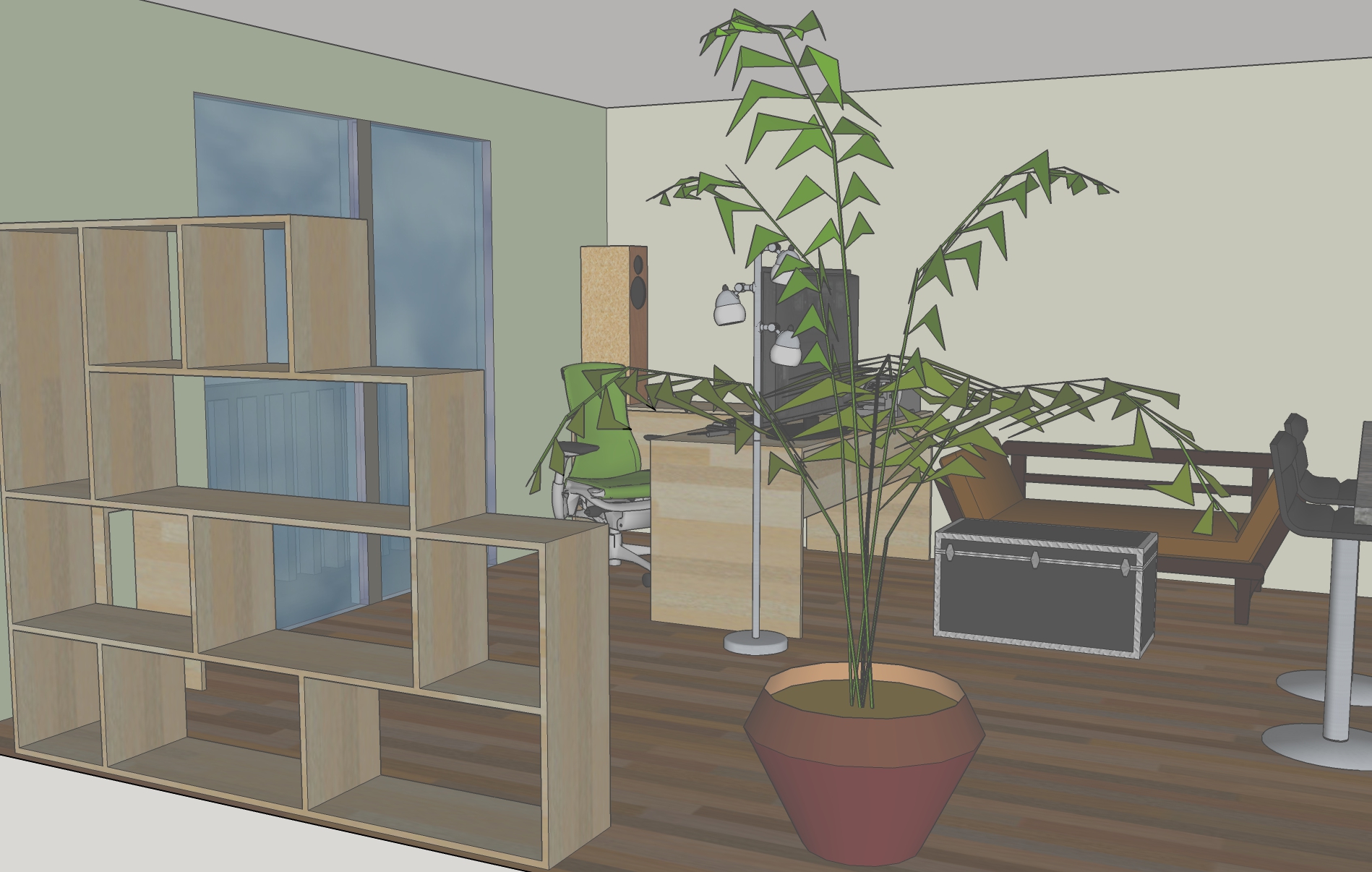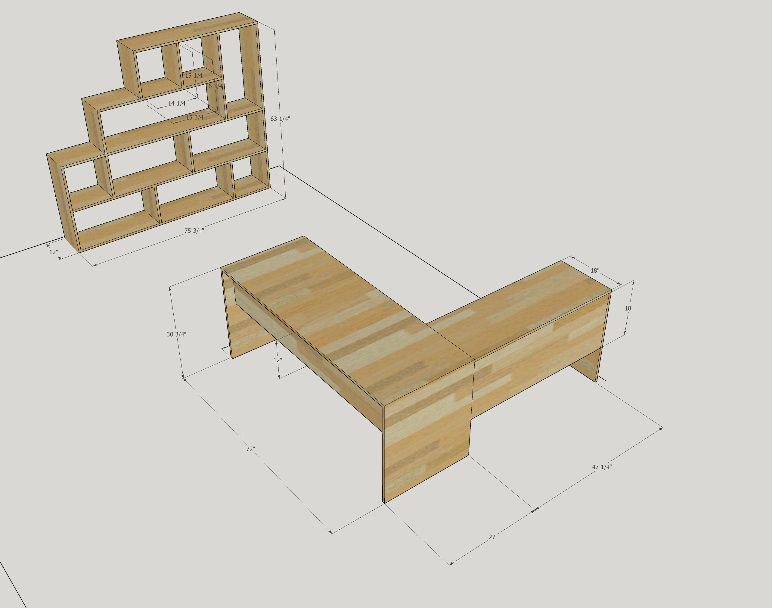 The project was to design a unique and modern desk and shelf to fit a specific home-office space.